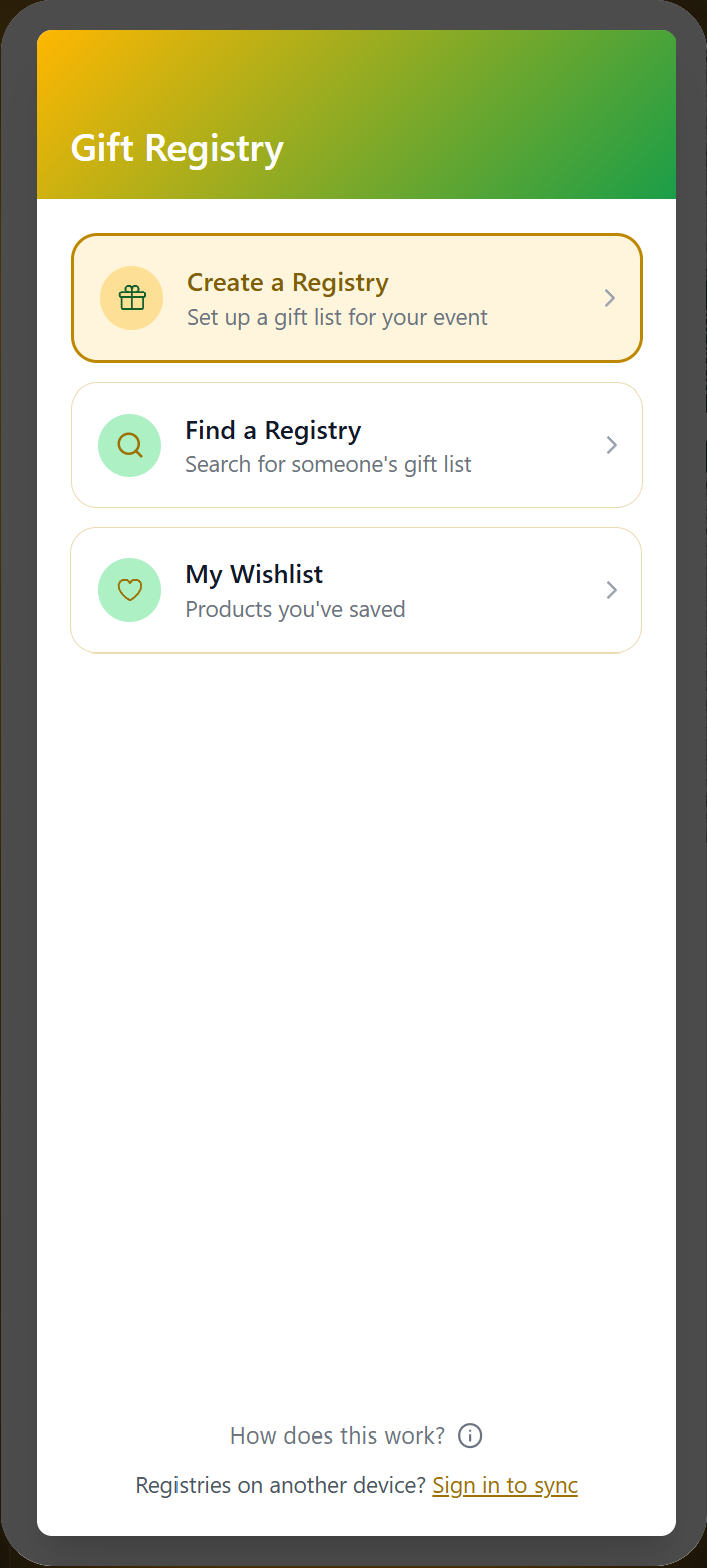 Get started with gift registries at no cost.